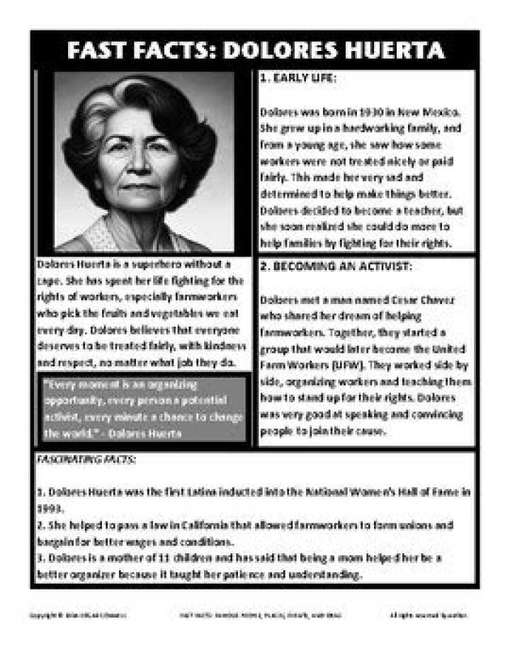 Question 2: What inspired Dolores Huerta to become an activist?Huerta's experiences growing up in a farmworker community and witnessing firsthand the injustices faced by laborers fueled her passion for social justice. Her parents' commitment to education and advocacy also greatly influenced her decision to pursue activism.