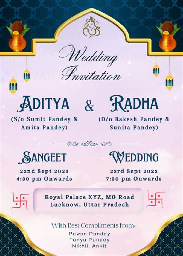 - Tradition: Many Indian wedding card wordings include traditional religious verses or blessings. If you want to incorporate tradition into your wedding, you can include these verses in your invitations.