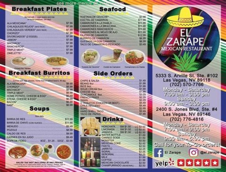 The variety of the menu also allows El Zarape to adapt to changing trends and customer demands. As new culinary trends emerge, El Zarape can easily add new dishes to its menu to keep up with the times. This flexibility allows El Zarape to remain relevant and appealing to its customers.