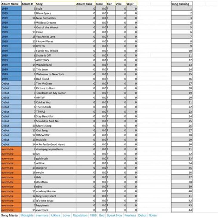 - The history of Taylor Swift ranking spreadsheets