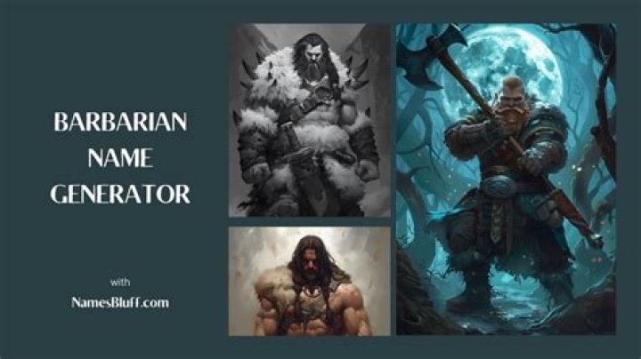 Question 4: How can I incorporate my barbarian's tribal affiliation into their name?Tribal affiliation can be reflected in a barbarian's name through the use of specific elements or symbols. For example, a barbarian from a wolf-worshipping tribe might have a name like "Wolfbane" or "Fangorn." Alternatively, a character from a tribe known for its connection to the sea could be named "Stormbringer" or "Tidecaller."