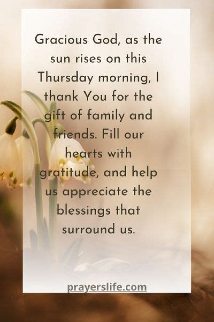 - Gratitude and Appreciation: Thursday morning prayers offer an avenue to express gratitude for the presence of family and friends in our lives. By acknowledging their love, support, and positive impact, we strengthen the bonds that unite us.