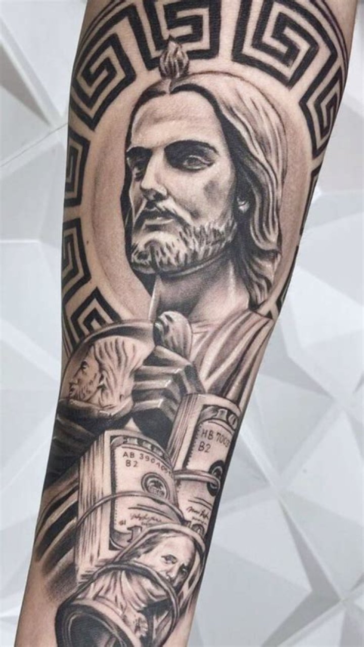 - Symbolism: Saint Jude is the patron saint of lost causes and desperate cases. His tattoos often feature iconography such as a flame representing the Holy Spirit or a book representing his role as an apostle.