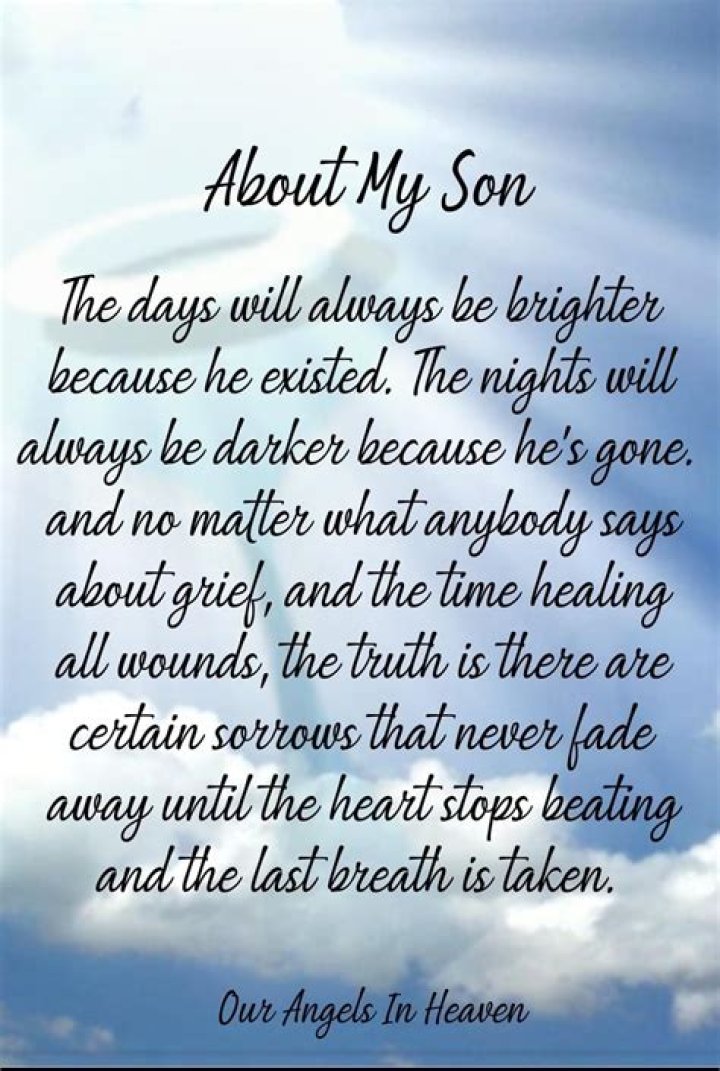 - Cultural Traditions and Beliefs: Grieving quotes for son are influenced by cultural traditions and beliefs about death and the afterlife. In some cultures, death is viewed as a natural part of life and grieving is seen as a process of honoring the deceased and supporting the bereaved. In other cultures, death is seen as a more taboo subject, and grieving may be more private and inward-looking.
