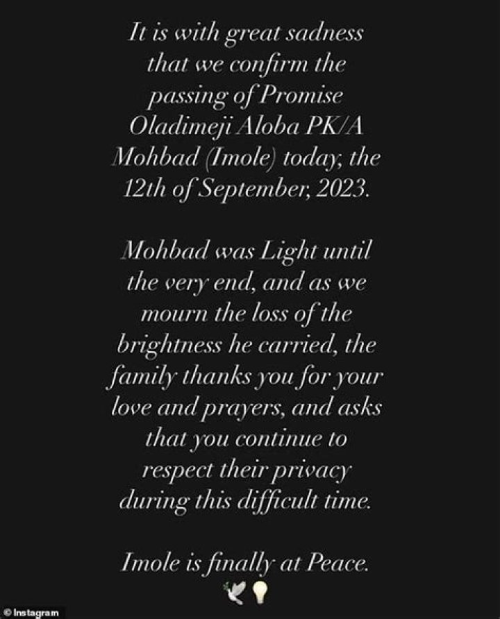 Mohbad's real name, Ilerioluwa Oladimeji Aloba, reflects his Yoruba heritage and his connection to Lagos. The name Ilerioluwa means "God's will", which suggests that he was a much-desired child. The name Oladimeji means "wealth is mine", which is a blessing and a wish for prosperity. Aloba is his father's surname.