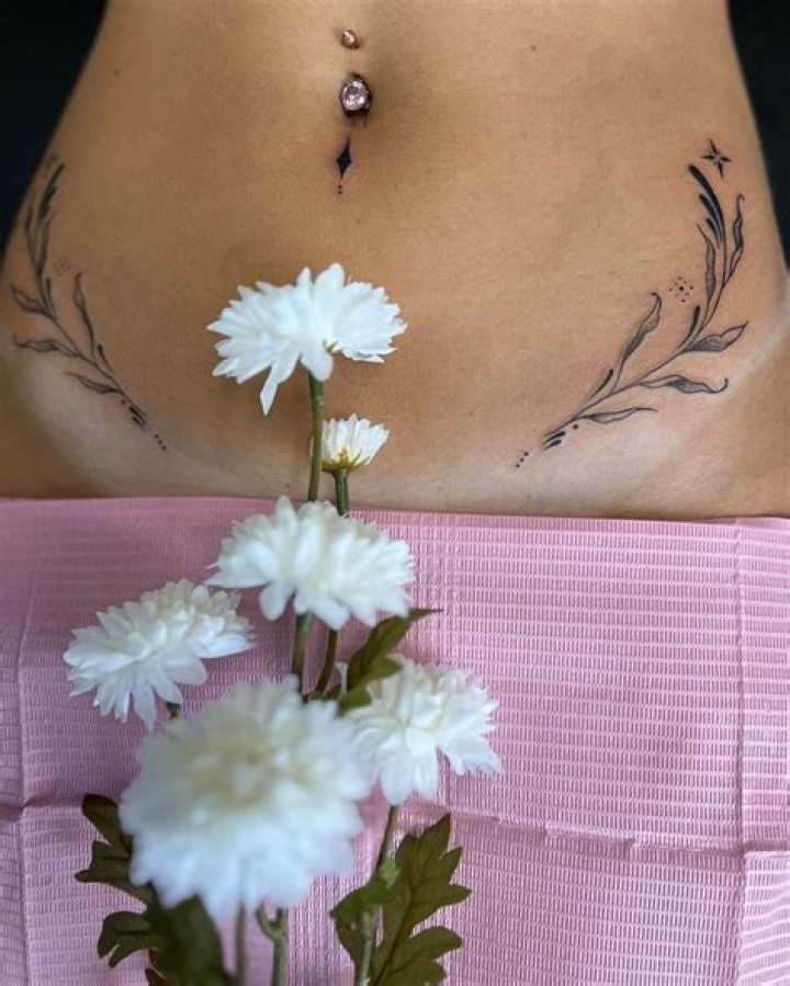 A lower belly tattoo for women is a tattoo placed on the lower abdomen, below the navel. These tattoos can vary greatly in size, design, and color, and can be either permanent or temporary. Lower belly tattoos are often chosen by women who want to express their individuality, creativity, or personal style. They can also be used to cover up scars or other imperfections.