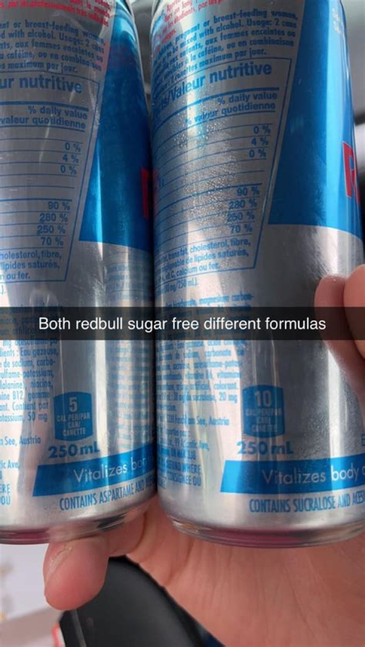 - Sweeteners: Sugar-free Red Bull uses artificial sweeteners like aspartame and acesulfame potassium, while regular Red Bull uses sugar.